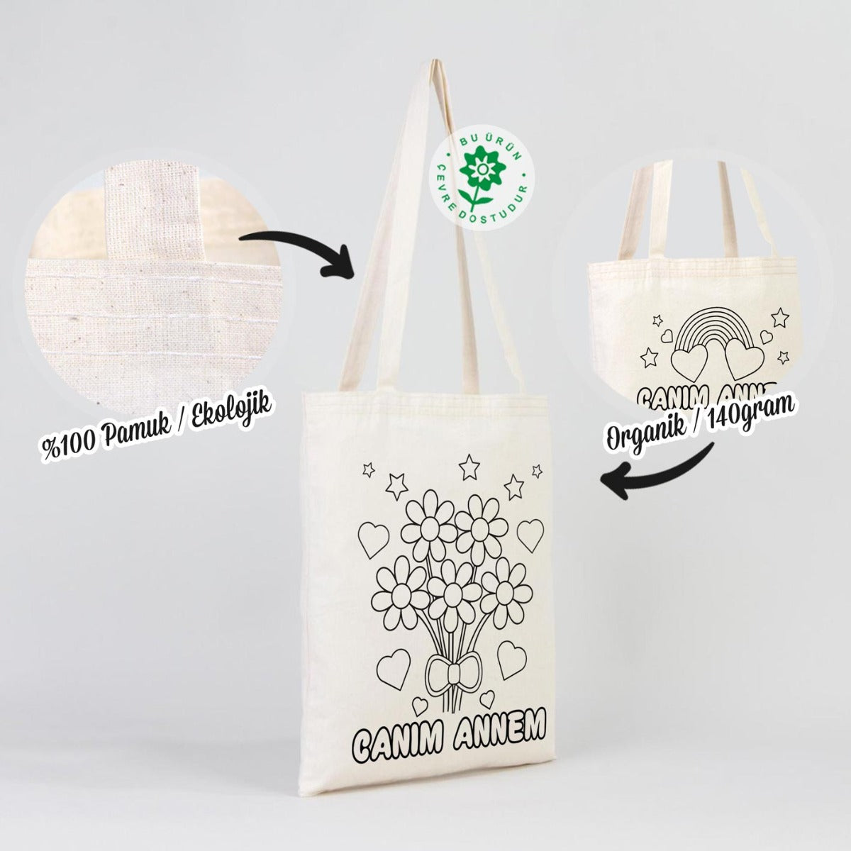 - Ham bez çanta boyutları 35×40 cm (ürünler el dikimi olduğundan +/- 1cm ölçülerinde küçük farklılıklar olabilmektedir)