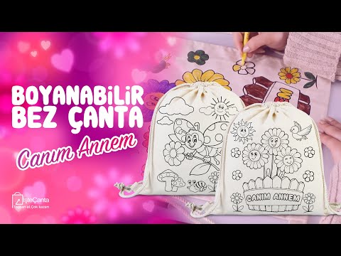 Anneler Günü Boyanabilir Büzgülü Bez Çanta