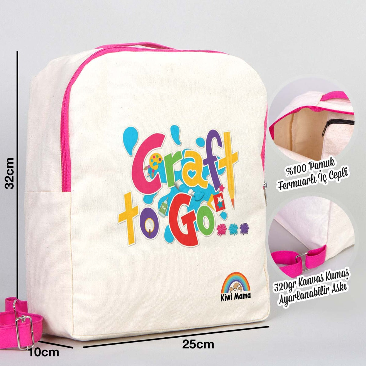 - Kanvas bez çanta boyutları 25x32x10cm (ürünler el dikimi olduğundan +/- 1cm ölçülerinde küçük farklılıklar olabilmektedir)