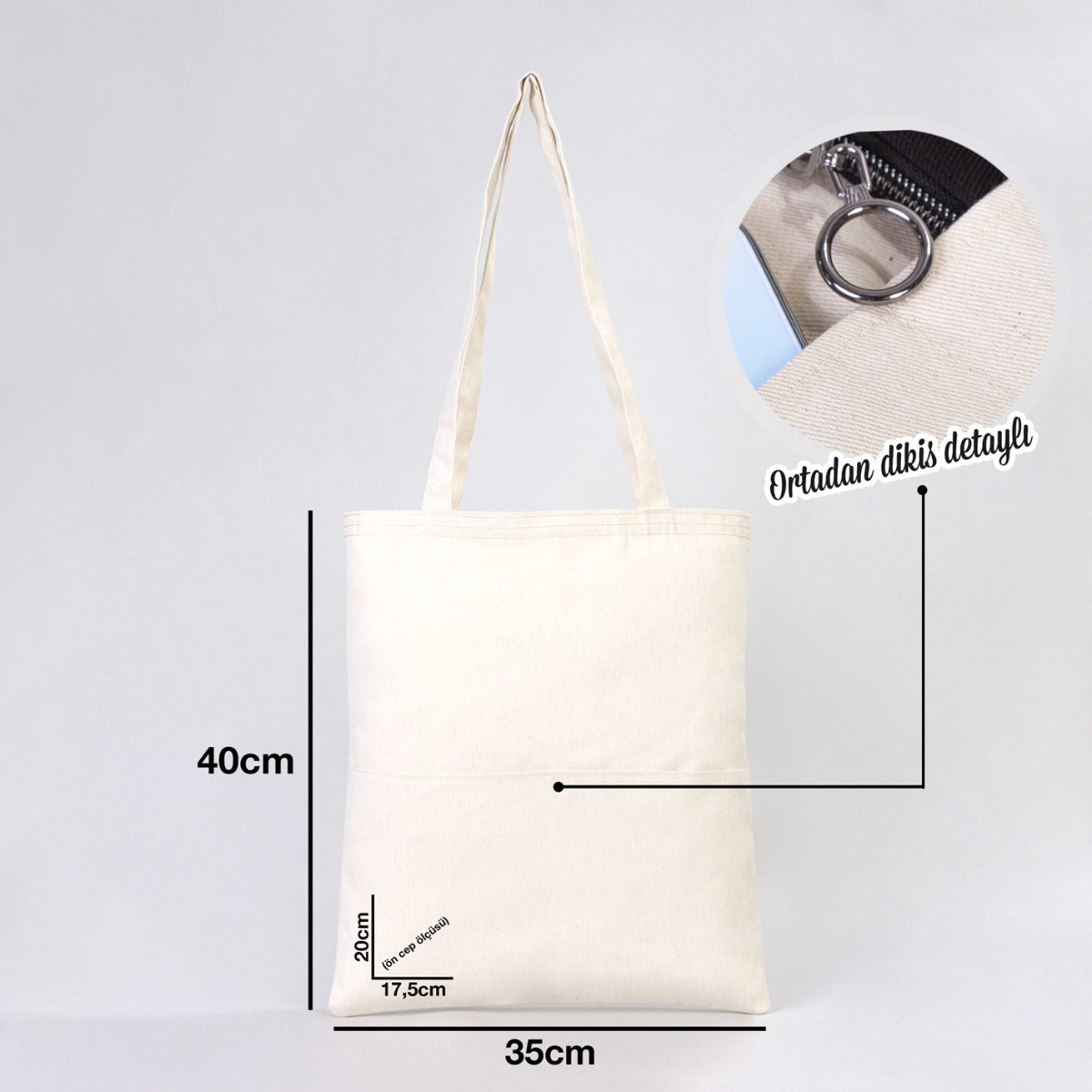 • Gabardin Bez Çanta Boyutları 35×40 cm (+- 1 cm değişiklik gösterebilir)