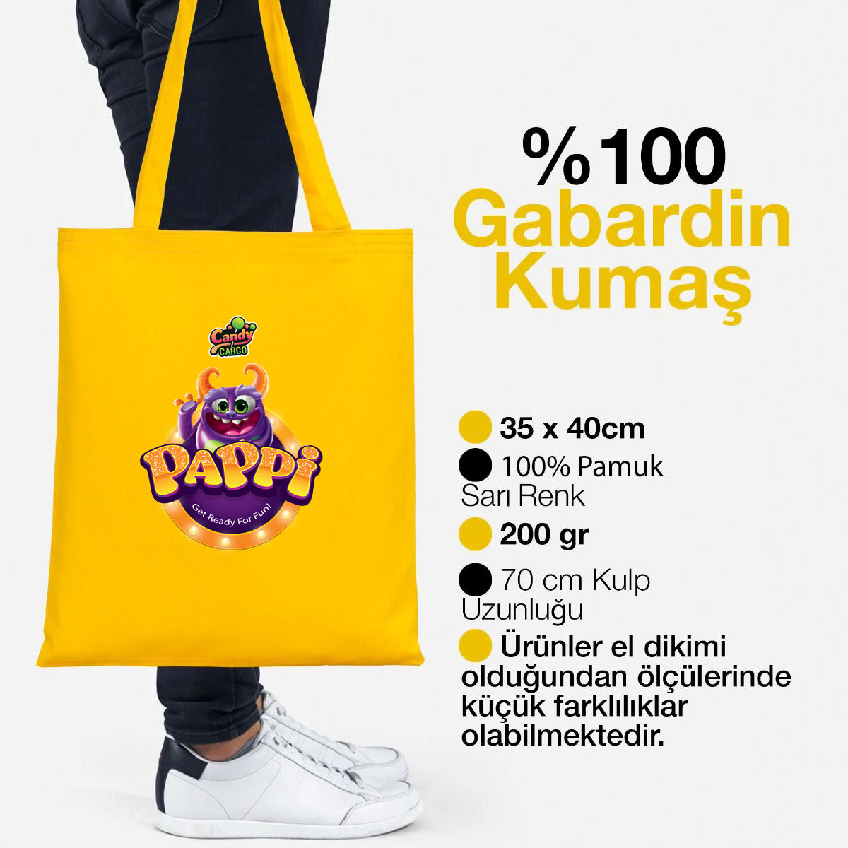 - Sarı gabardin çanta üzerine basılacak logonuzu veya görselinizi baskı dosyası yükleme alanından yükleyebilirsiniz.