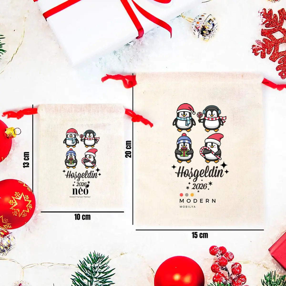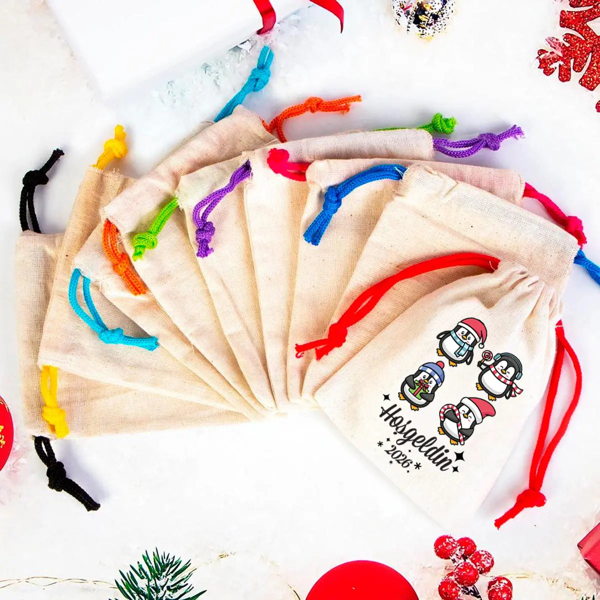 Hoşgeldin 2026 Baskılı Bez Kese – Renkli İp (Özelleştirilebilir)