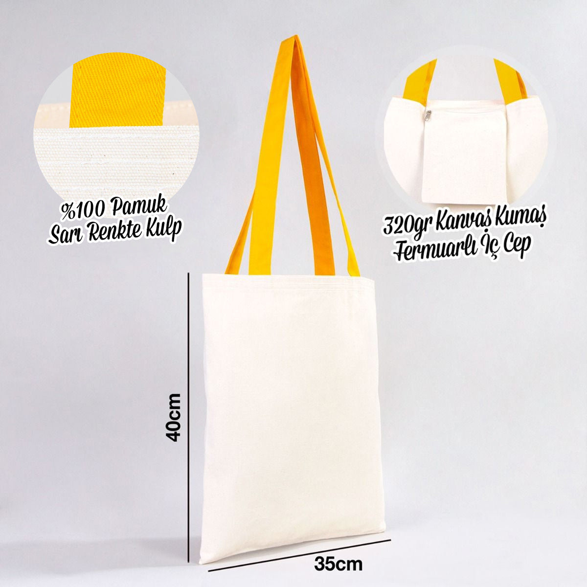 Kanvas Çanta Sarı Kulp – İç Cepli – 35×40 cm
