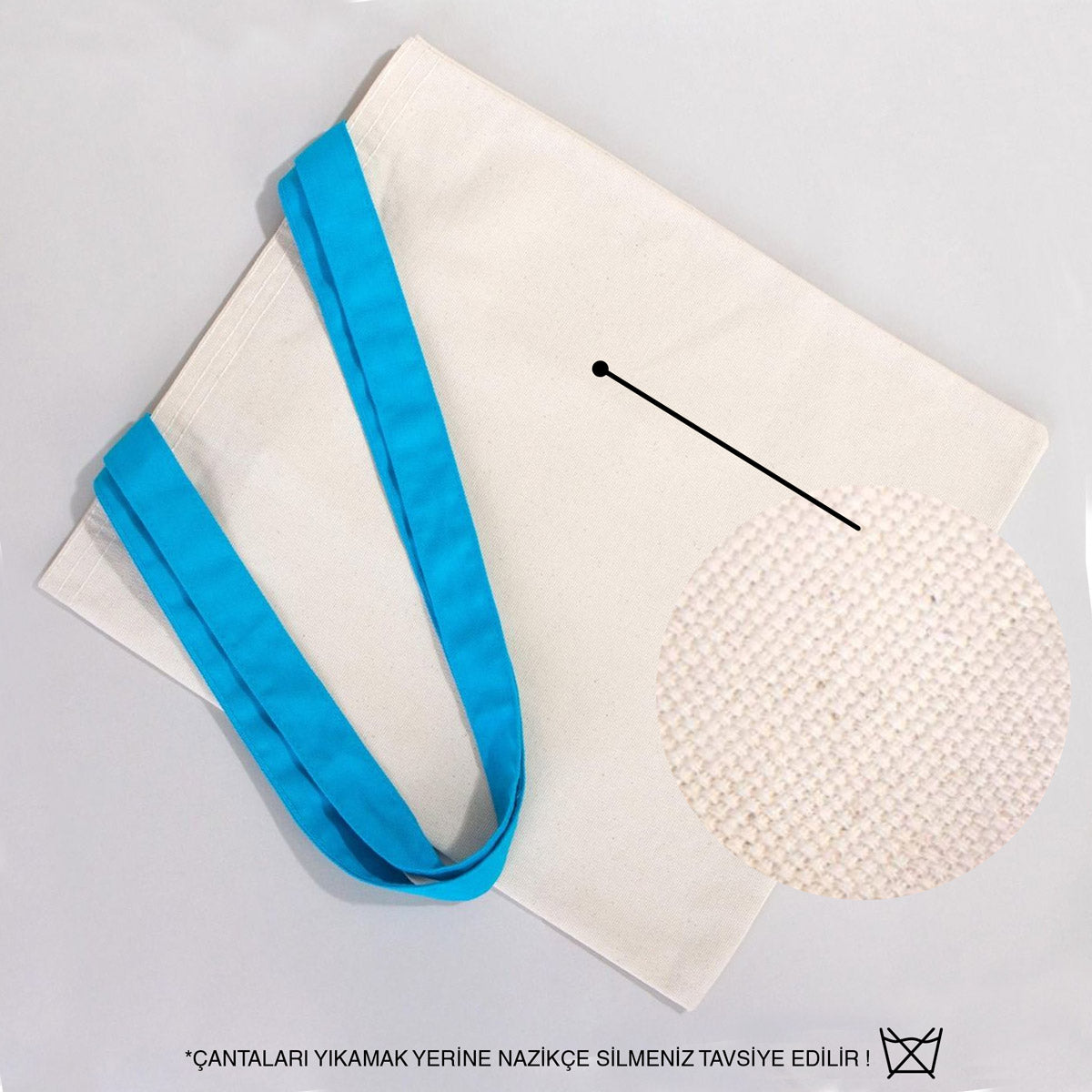 Kanvas Çanta Turkuaz Kulp – İç Cepli (Özelleştirilebilir)