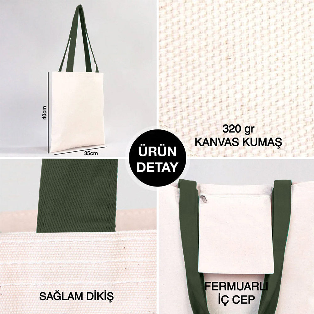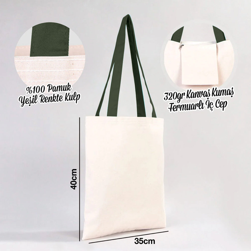Kanvas Çanta Yeşil Kulp – İç Cepli – 35×40 cm