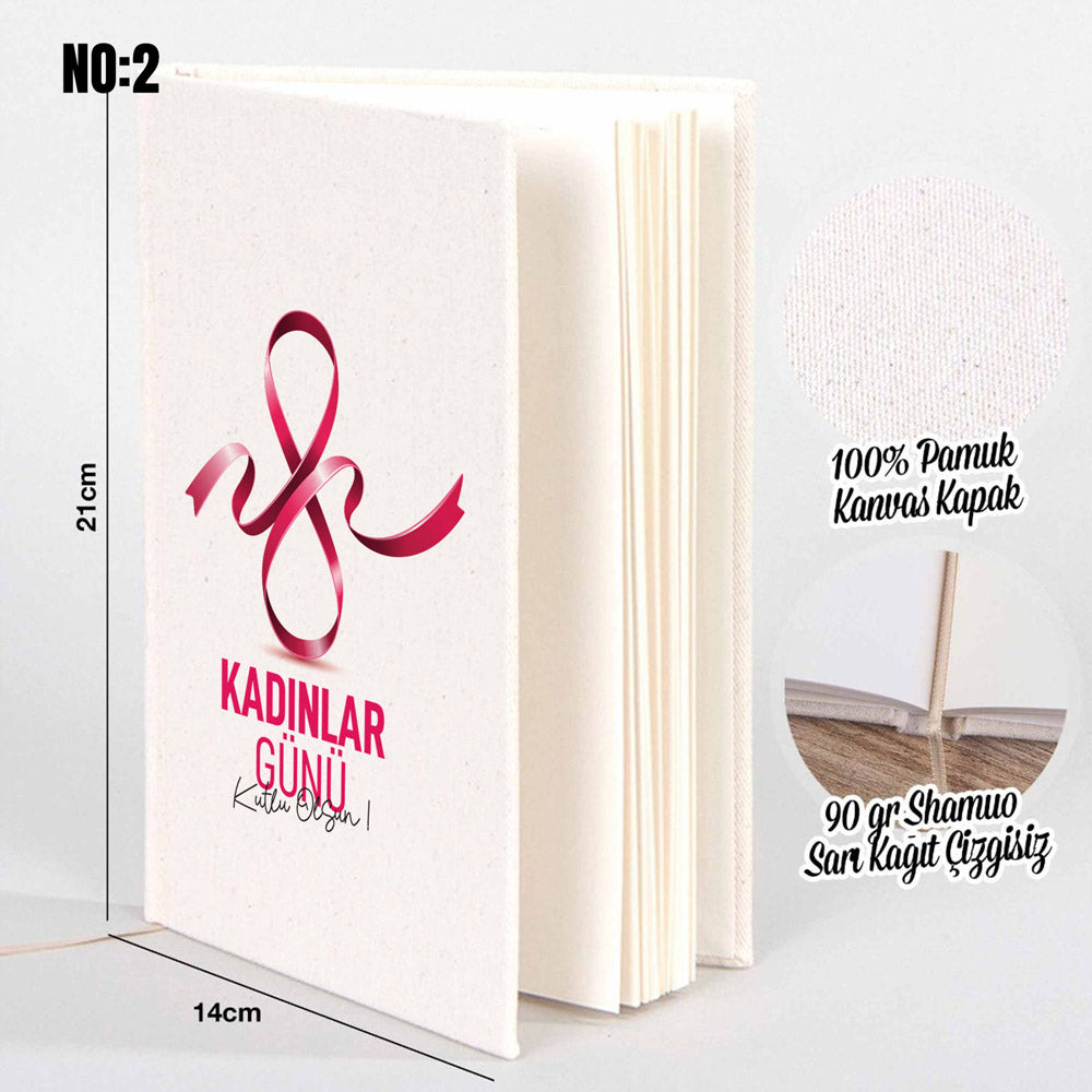 8 Mart Kadınlar Gününe Özel Baskılı Kanvas Defter – 14×20 cm