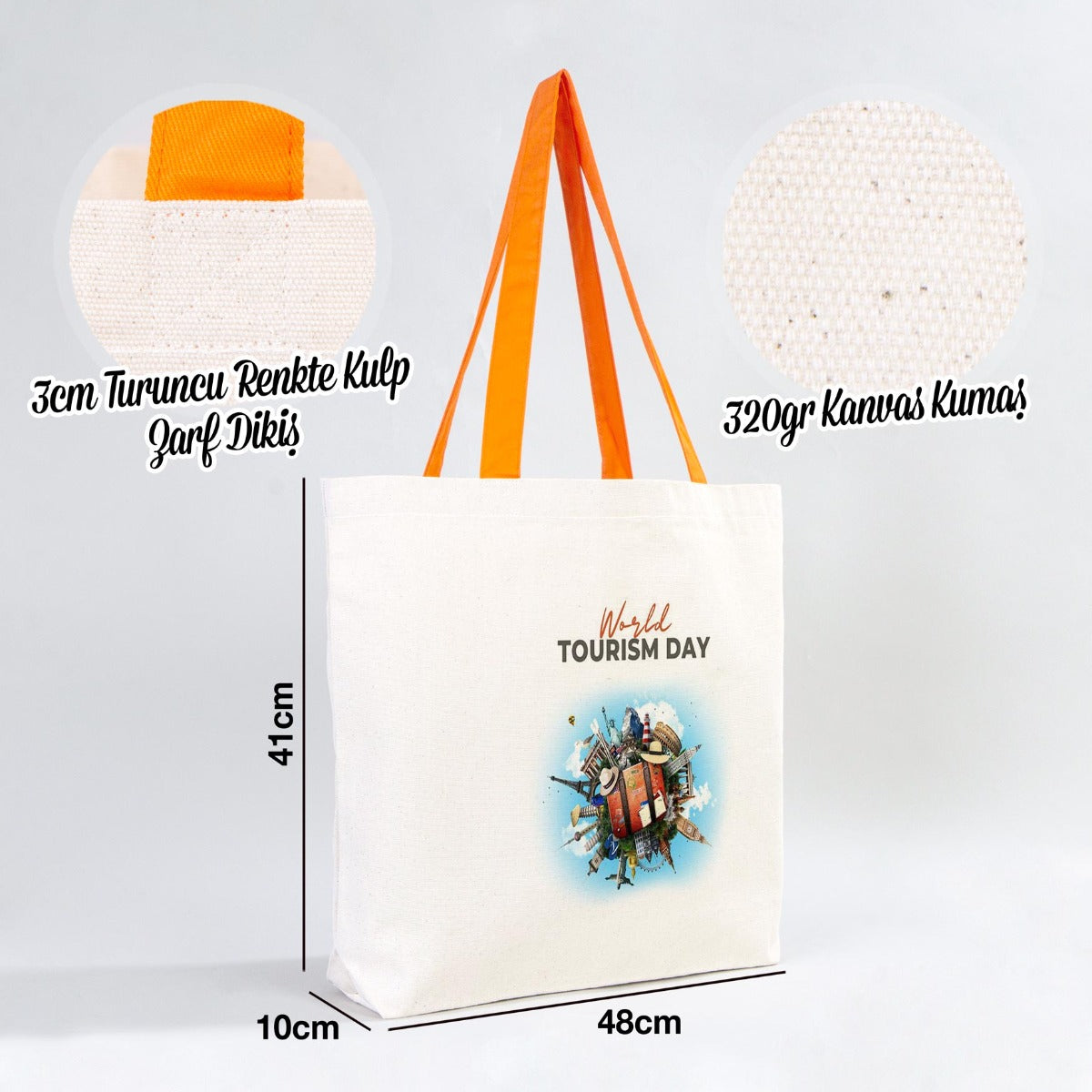 Kanvas Plaj Çantası Turuncu Kulp 48x41x10 cm (Özelleştirilebilir)