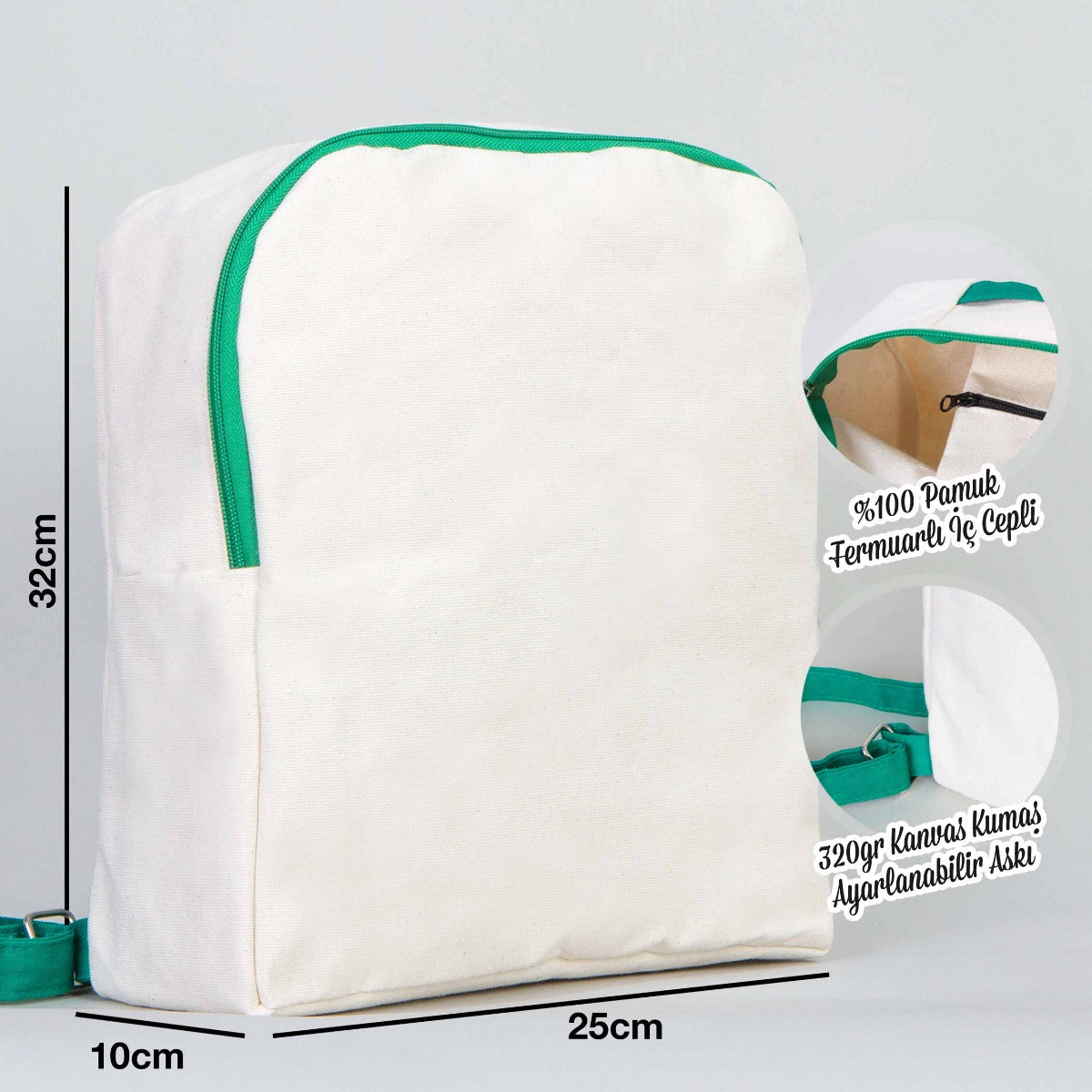 • 320 gr kanvas kumaştan imal edilmiştir.