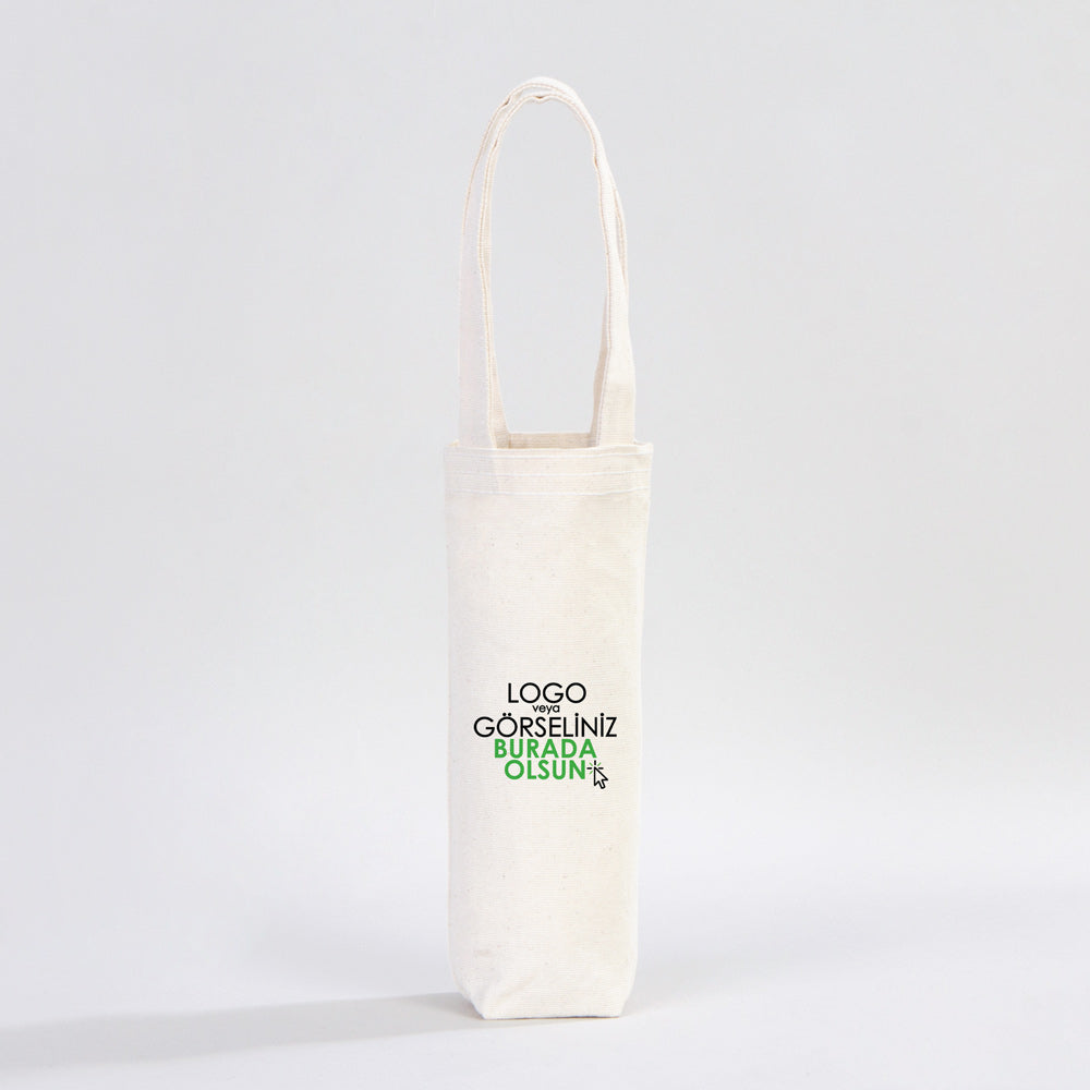 Kanvas Zeytinyağı Şişe Çantası – Termos Bardak Çantası 26×15 cm (Özelleştirilebilir)