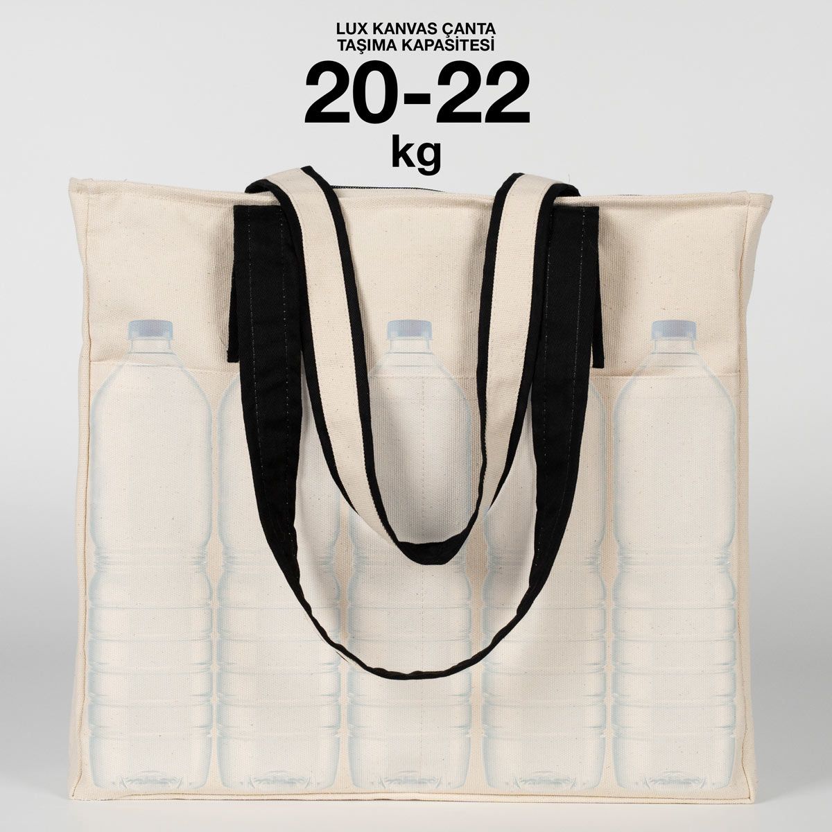 - LUX kanvas çanta boyutları 40x35x10cm (ürünler el dikimi olduğundan +/- 1cm ölçülerinde küçük farklılıklar olabilmektedir)