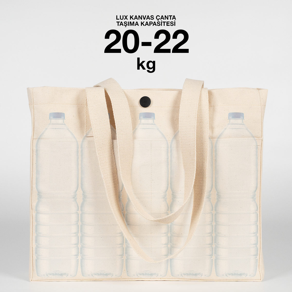 - LUX kanvas çanta boyutları 40x35x10cm (ürünler el dikimi olduğundan +/- 1cm ölçülerinde küçük farklılıklar olabilmektedir)
