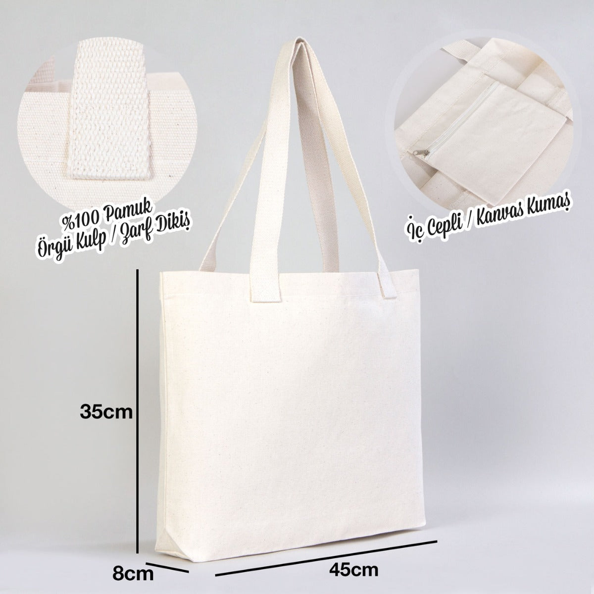 - Kanvas Örgü Kulp Çanta Boyutları 45x35x8 cm (+- 1 cm değişiklik gösterebilir)