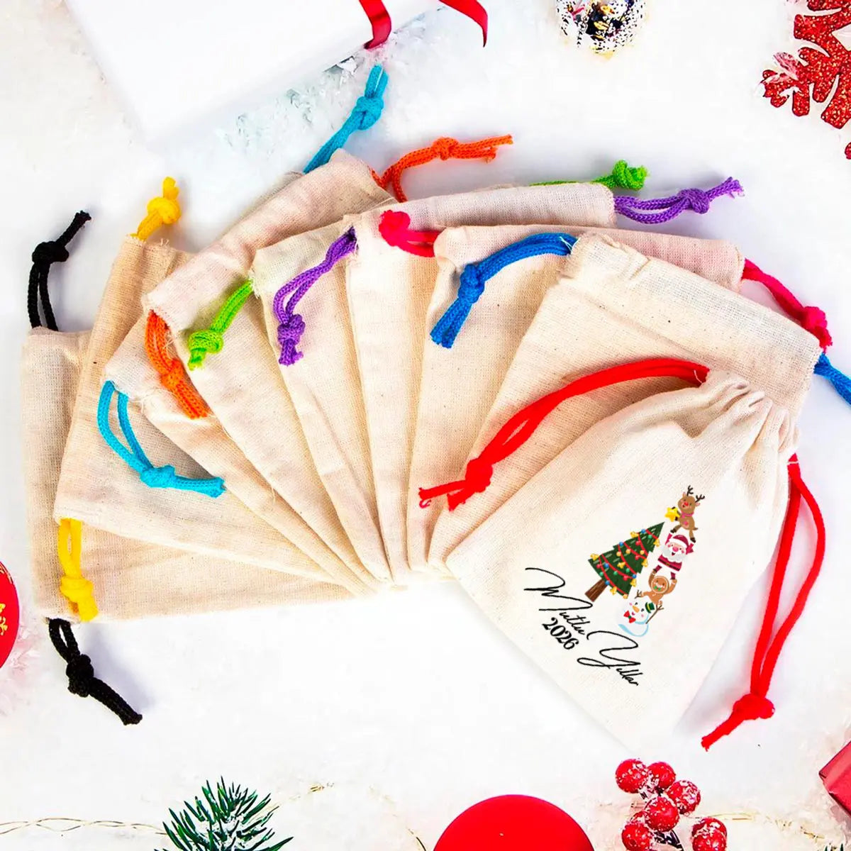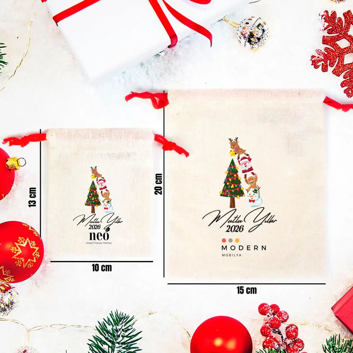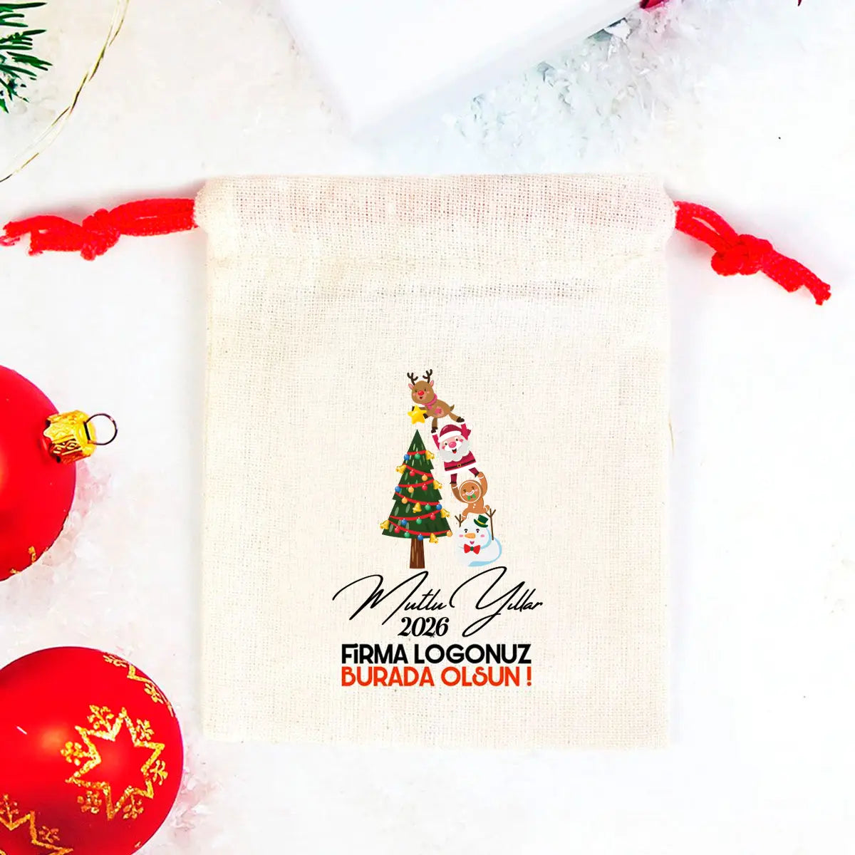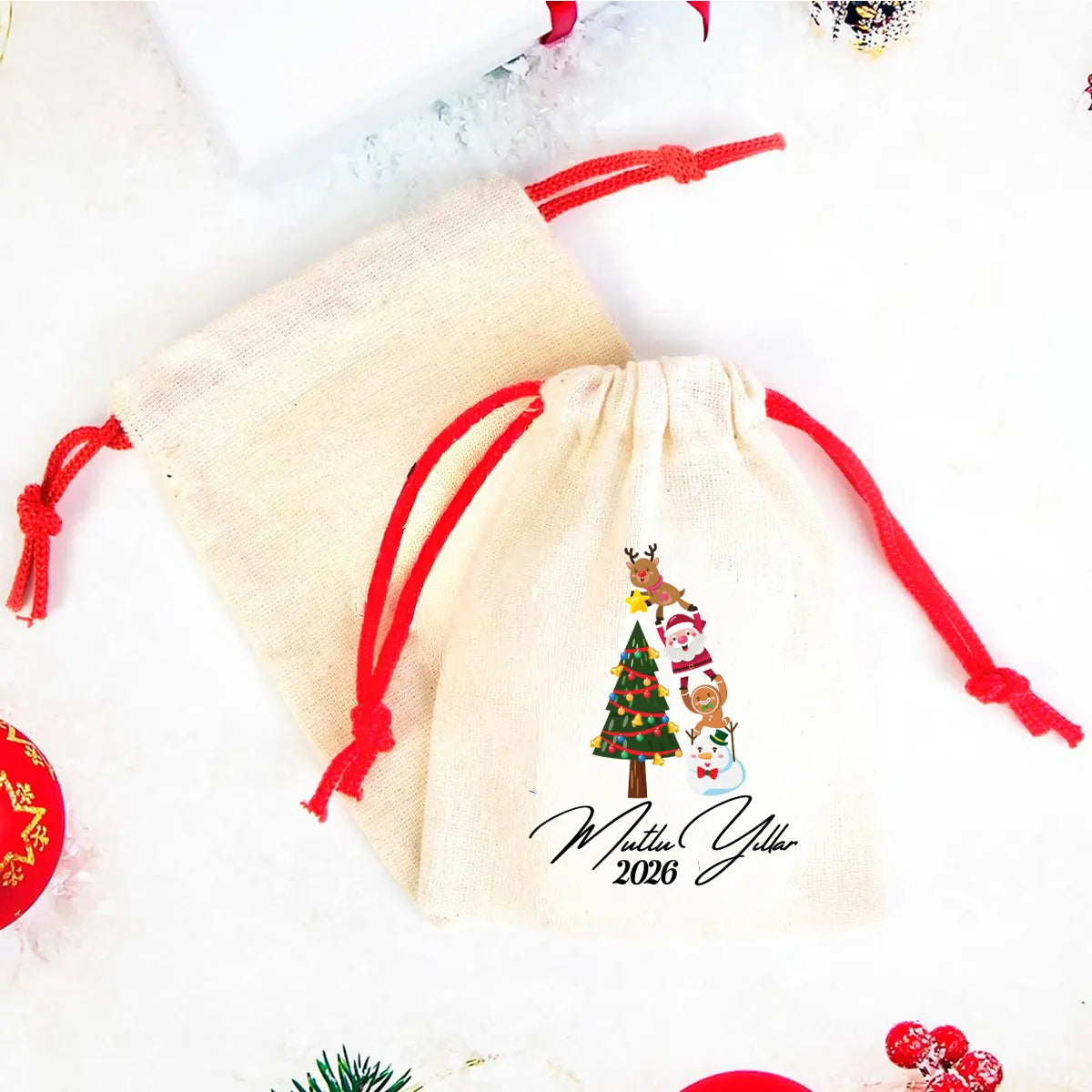 Mutlu Yıllar 2026 Baskılı Bez Kese – Renkli İp – (Özelleştirilebilir)