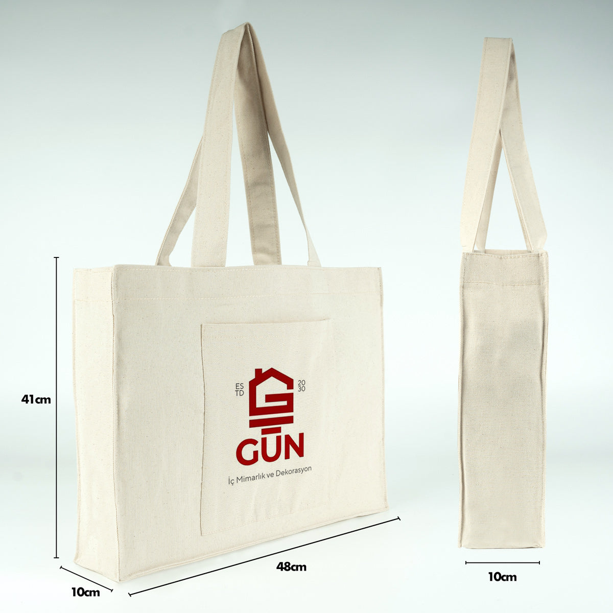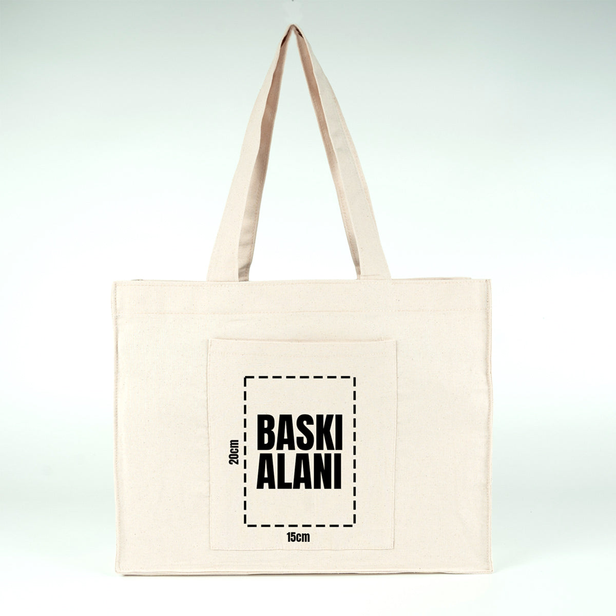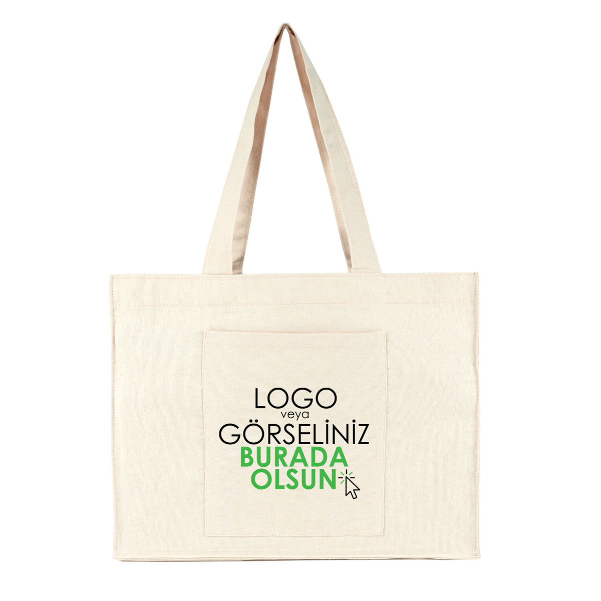 Tam Körüklü Kanvas Çanta – Cepli – 45x35x10 cm (Özelleştirilebilir)