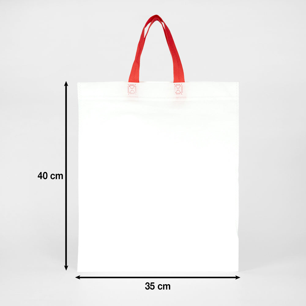 Tela Çanta Ultrasonik – Kırmızı Kulplu – 35×40 cm