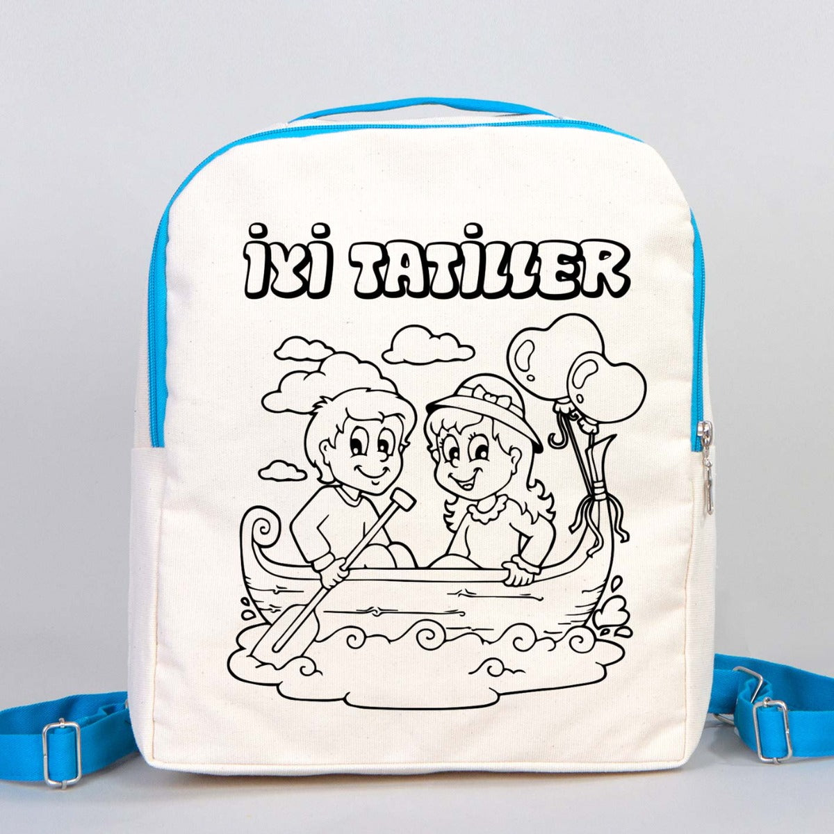 - Sırt askıları ayarlanabilirdir – turkuaz kanvas kumaştan dikilmiş.