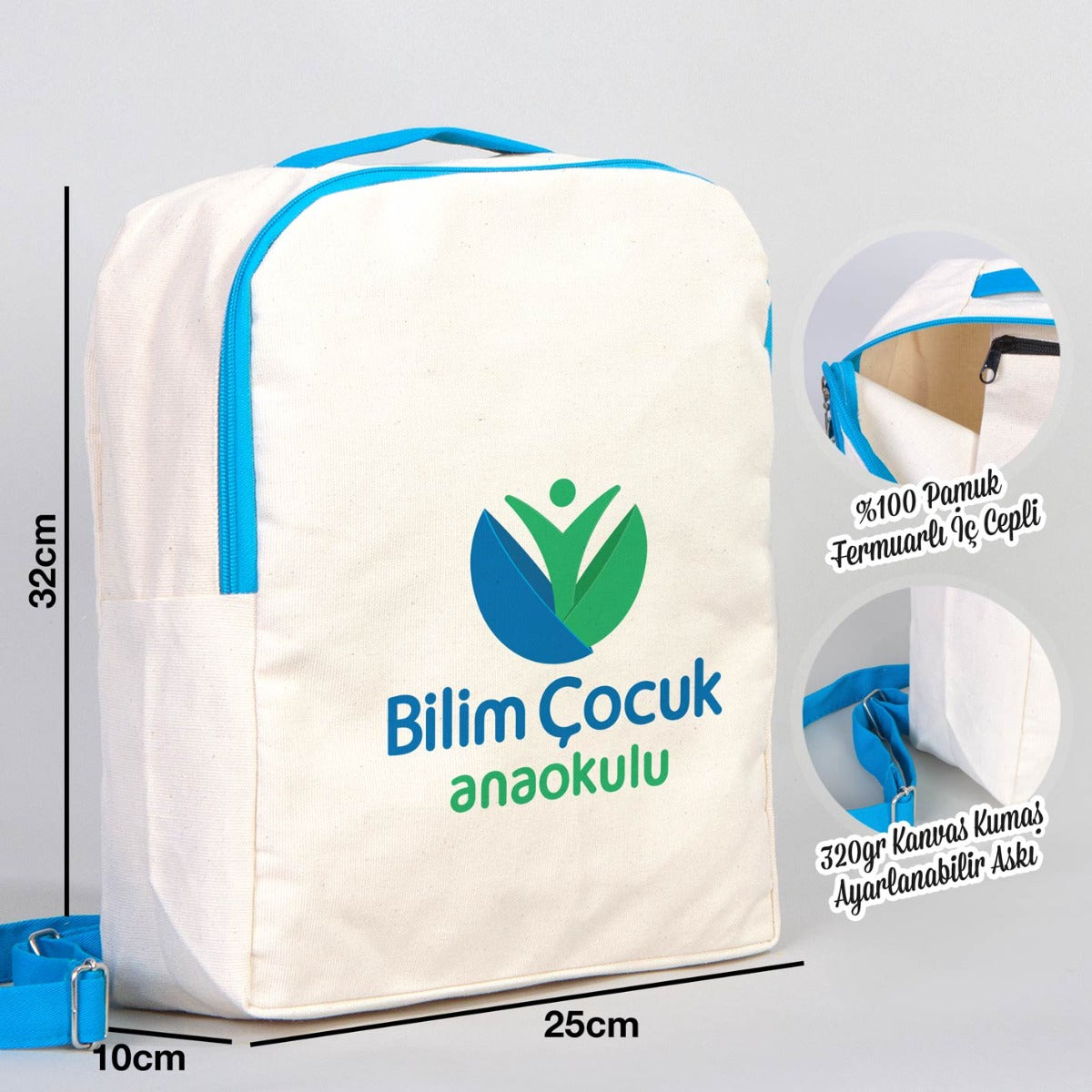 Turkuaz VIP Kanvas Sırt Çantası (Özelleştirilebilir)
