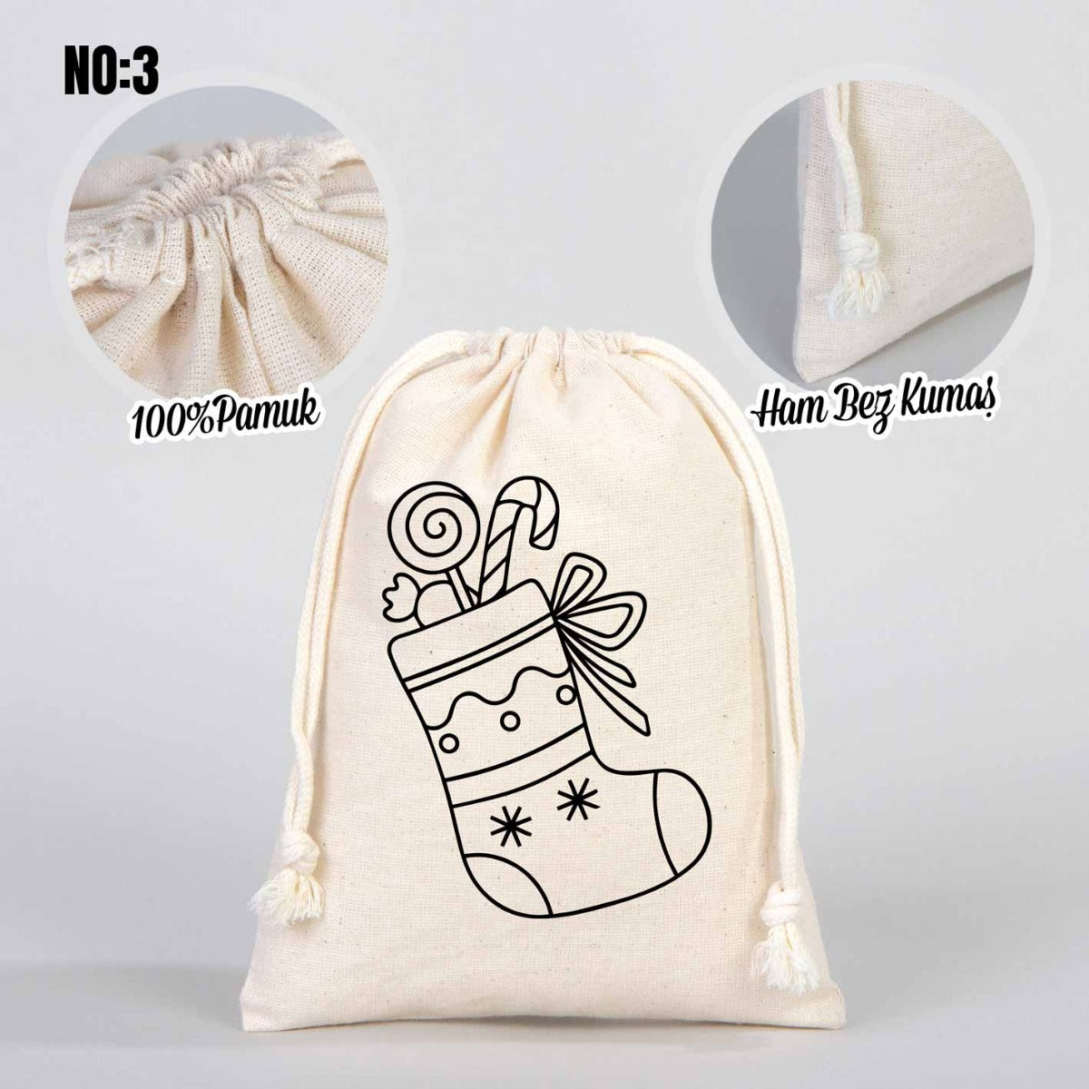 • Boyanabilir Yılbaşı Bez Kese Boyutları 15,5 x 20 cm’ dir. ( +- 0,5 cm )