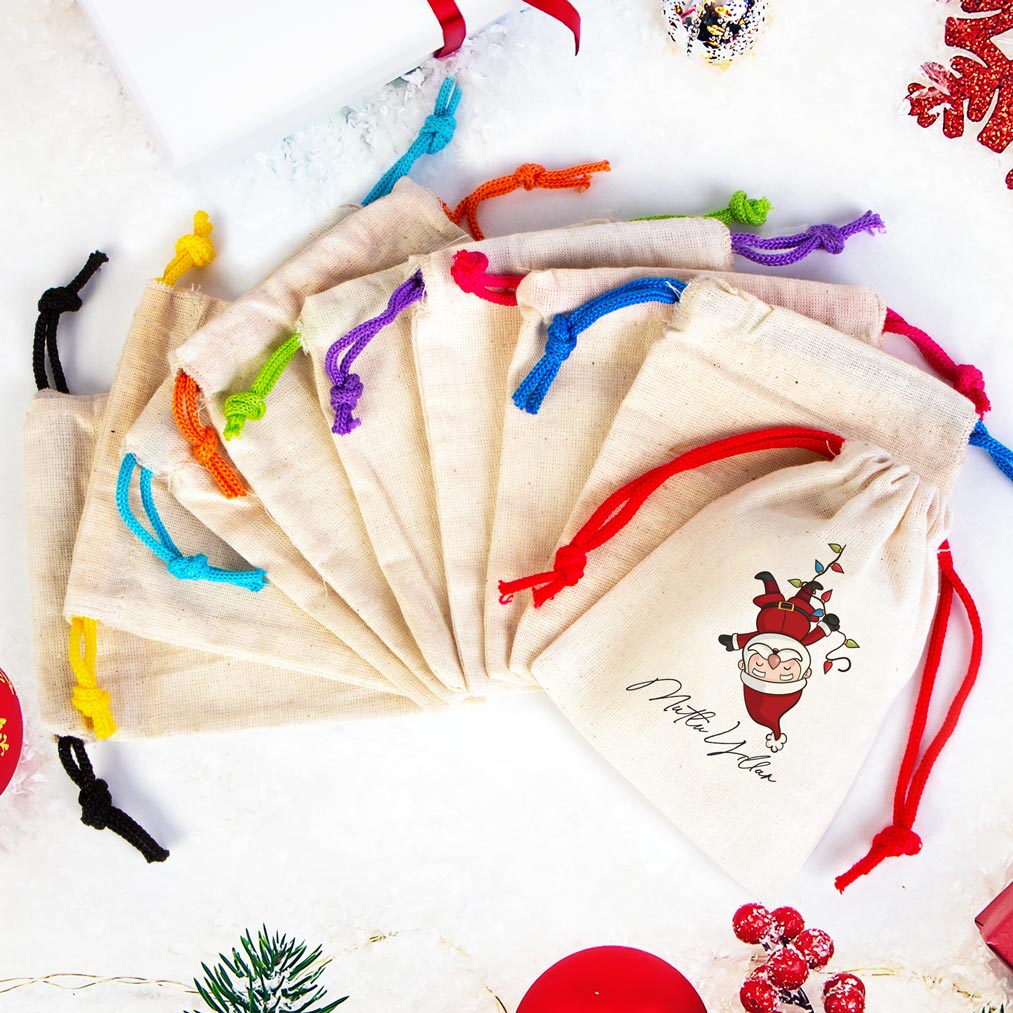 Yılbaşı Hediyesi Mutlu Yıllar Noel Baba Baskılı 2 – Renkli İp (Özelleştirilebilir)